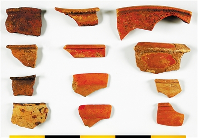 新石器時代陶片以及銅敦。 張春長、省文研所供圖