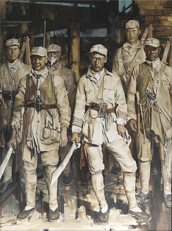 從《英國侵占香港》到《香港人民歡慶新中國成立》,再從《香港回歸祖國,特區政府成立》到《不忘初心,堅持“一國兩制”,香港的未來一定更美好》,香港回歸祖國20年展中這些用中國畫呈現的一幅幅歷史瞬間,既再現了歷史事件與人物對于香港近現代歷史的深刻影響,也探索了中國人物畫還原宏大歷史場景所具有的獨特藝術魅力,眾多人物形象塑造與恢弘氣象營造成為這些畫作書寫歷史的藝術基調。在歷史題材創作上,慶祝建軍90周年全國美展中的《紅軍北上》《金戈鐵馬》《我的父輩》和《八路軍大刀隊》等,讓人們看到了當代美術家對于人民革命戰爭的真切描繪、對于浴血奮戰的英雄形象的完美塑造。這些創作還讓人們看到了美術家追求歷史真實的嚴謹創作態度與通過精湛的藝術語言重構歷史的想象與創造,這種歷史書寫在當下更加鮮明地凸顯出英雄主義的精神底蘊。