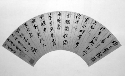 董其昌的《行草書七言律詩扇》,亮相于2014年9月在中國國家博物館舉辦的“小品大藝——明清扇面藝術展”。劉兆明攝 光明圖片/視覺中國