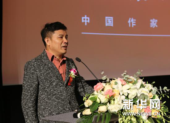 原中國作協黨組副書記王巨才給獲獎作者頒獎