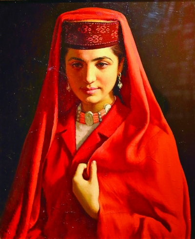 中國人有自己的生命美感,中國人也懂得愛。我的同鄉詩人蔡其矯在極左年代就喊出:青春萬歲。愛情萬歲。少女萬歲。極左年代,直接贊美生命美是不行的。于是,那個曾經把“革命”兩個字繡在胸口衣服上的春蘭,給了畫家想象的空間。讀者甚至不允許作家寫她變壞,《紅旗譜》的作者梁斌只好尊重讀者。黃胄1960年的《春蘭》在那樣的年代悄悄露面。那眼神,那掛在嘴角的一絲微笑。也許因她的前史,帶著速寫特色的流暢筆墨線條的黑衣美女,讓人愛不釋手。畫家心有靈犀,于是有了很多《春蘭》,《春蘭》從插圖而成了獨立的肖像人物。我們后來就有了一些讓人過目不忘的中國人的臉。靳尚誼的《塔吉克新娘》、王祈東的紅衣《新娘》系列。女人一生最漂亮的時候就是當新娘子的日子。