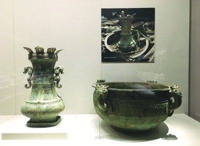 “晉趙簡子用銅鑒、銅壺”及出土時的照片