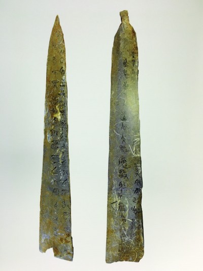 在鑒壺旁,擺了一組山西出土的“侯馬盟書”及河南出土的“溫縣盟書”,都是當時晉國卿大夫之間舉行盟誓用誓詞。展覽說明寫道:“據《春秋》記載,242年內諸侯國之間朝聘盟會多達450次,反映了諸侯國之間、公室與卿大夫之間、卿大夫相互之間,為重新劃分利益訂盟誓而破壞原有禮制的事實?!瘪R今洪說,春秋時期經常會盟,通常召集人即是盟主,盟主就是“老大”,最為人熟知的五個“老大”是春秋五霸。訂盟書的意義在于規定利益邊界,主要是為了盟主的利益,“老大吃肉,小弟喝湯”。