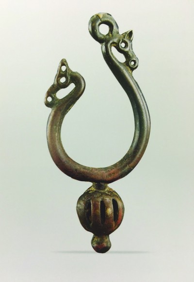 所見最早的金玉相結合的器皿——浙江省博物館供展的“玉耳金舟”。有寶雞市考古研究所供展的“金柄鐵劍”,是用黃金和鐵這兩種當時最為貴重的金屬鑄造的。還有些動物造型的金飾,甚是精妙。