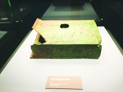 往前走,只見展柜中陳列著不少建筑構件,如陶瓦、瓦當、陶水管等,來自春秋戰國時期的各個都城。據《鹽鐵論·通有》:“燕之涿、薊,趙之邯鄲,魏之溫、軹,韓之滎陽,齊之臨淄,楚之宛陳,鄭之陽翟,三川之二周,富冠海內,緣為天下名都?!痹俳Y合這些年對都城城址的考古發現,可證當時都城的繁華。記者看到,在展柜中陳列著幾件青銅建筑構件,有曲尺形的,有楔形的,有方筒形的。馬今洪介紹,其中的曲尺形銅建筑構件,是目前發現時代較早的銅質建筑構件。這些銅質建筑構件一般用于連接枋、梁,主要起加固和裝飾作用。據展覽說明,由于色澤金黃,這些銅質構件又被稱為“黃金鋼”。這批建筑構件的出土地陜西鳳翔,先秦時期屬于秦都雍城的范圍?!澳阆胂肟?,整個房子金光燦燦,當時的雍城多壯觀??!”