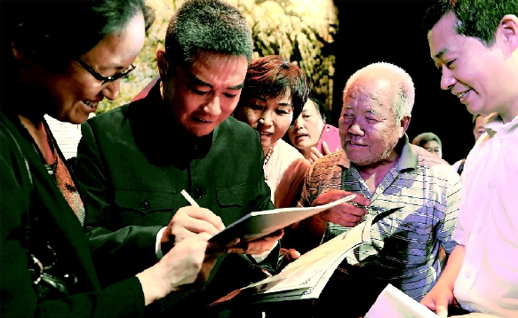 張建國(左二)演出后為觀眾們簽名,進行交流
