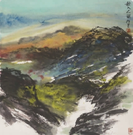 徐里的繪畫,根源于20世紀張大千、劉海粟的潑墨潑彩傳統,這一傳統是在20世紀對西方繪畫的引入和借鑒基礎上形成的,它以中國畫的寫意筆墨為骨,引入西方繪畫的色彩交響,較好地解決了色與墨的關系。作為油畫畫家出身的徐里,對筆墨色彩關系的理解和運用遠勝于許多中國畫畫家,他的山水畫,以墨為骨,以濃重而融合性的用色而著稱。雖然傾情于色與光的交響,但徐里更追求傳統文人的精神內涵,雖然描繪的是高山大川,但他并不以具體的地景風貌為標志,而是將內心的激情,不露痕跡地轉化為中國山水畫的自由精神。在他的筆下,對自然的喜悅和熱愛,不經意地從畫面中流露出來。徐里的繪畫,重點在群峰大山,所以其畫中的建筑與樹林,與大山融為一體,在朦朧中既突出了作品的渾然氣勢,又讓我們發現了畫家濃重而整體的用色之道。