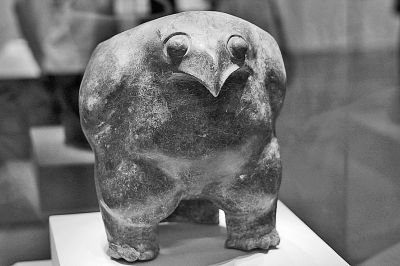 這是一只有著胖胖腿的鷹,尾巴又和兩只前爪巧妙地構成了鼎的三足。鷹的胸部和身體占鼎身的主要部分,內容即胸懷。陶鷹鼎的造型,帶著上古的氣息,也帶著中原質樸的民風。但更神奇的是,它除了上古的王者之氣,又同時顯示出另一種很現代的氣質,用當下的話說,就是“萌萌噠”。在這個層面,陶鷹鼎又可謂古典與現代的美妙融合。六千年前的造型藝術精湛至此,令人不禁贊嘆。