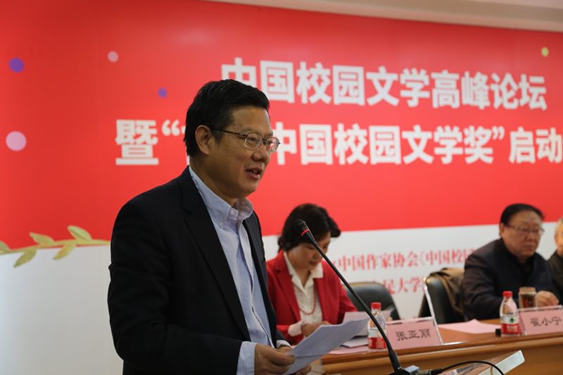 高洪波在致辭中表示,中國校園文學高峰論壇暨“中國校園文學獎”的啟動,充分體現了教育工作者和兒童文學工作者在新時代的新氣象和新作為,是中國校園文學事業發展的一次大檢閱和大練兵,對助力文科教學改革大有裨益。