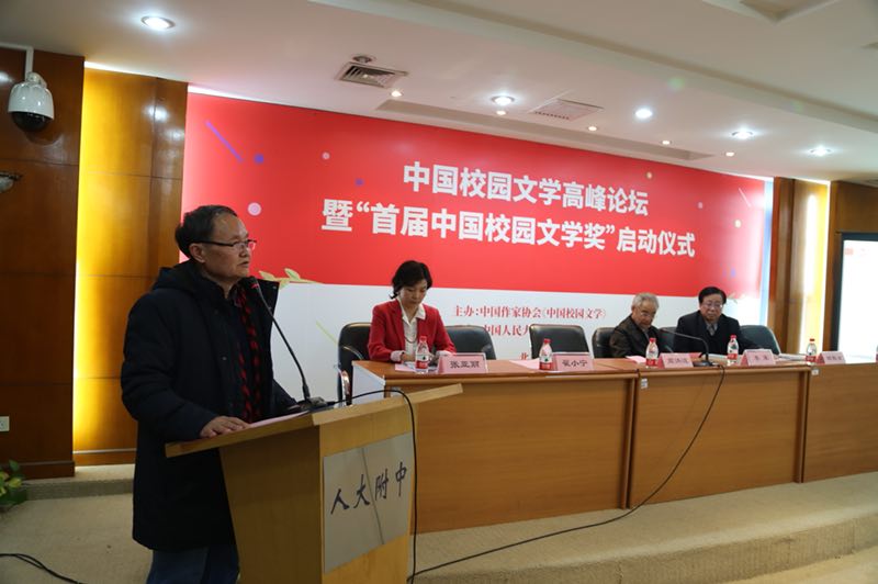為推動中國校園文學的健康發展,3月23日,中國作家協會下屬的《中國校園文學》雜志聯合中國人民大學附屬中學舉辦的“中國校園文學高峰論壇暨‘首屆中國校園文學獎’啟動儀式”在京舉行。