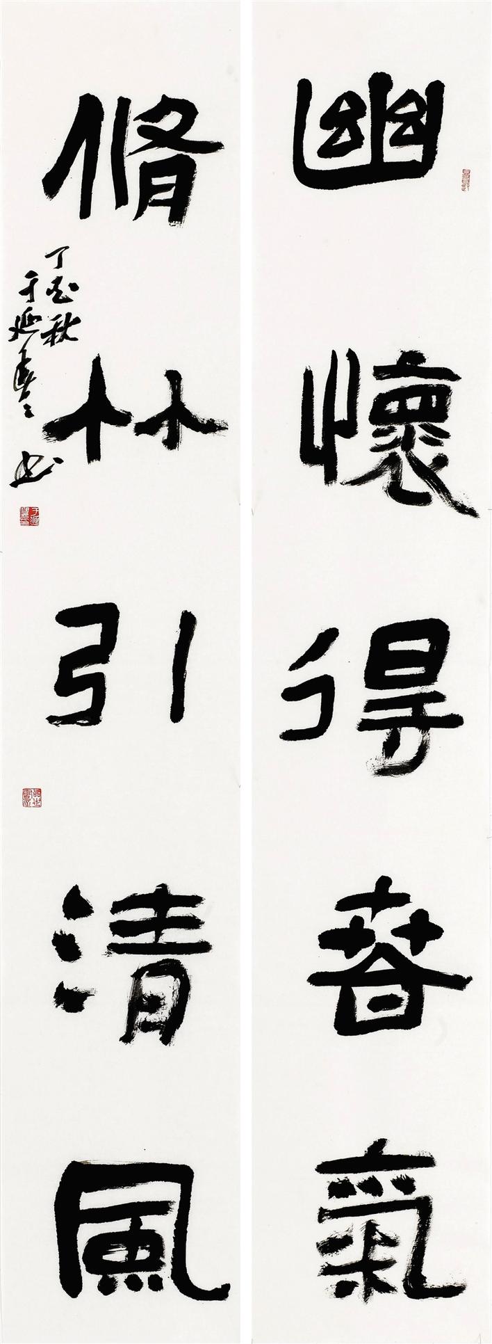 隨著年齡的增長,亦是跟自己的性格特點相契合,從2003年至今,于延豐在書法上重點轉至隸書創作?!拔叶嗄陙碇铝τ陔`書的研習,漢隸的博郁、樸茂、雄渾之氣深深地吸引著我?!庇谘迂S介紹,十多年來他對《張遷》《西狹》《郙閣頌》《好大王》《鮮于璜》《楊淮表》等隸書經典碑帖深入研習,回到源頭,追溯古人,將孔子的“夫好古敏求,則變化出矣”作為探索書法藝術的必由之路,在傳統中挖掘營養,并融入當代人的審美情趣,追求古拙、樸厚、沉雄、淳雅的書風。