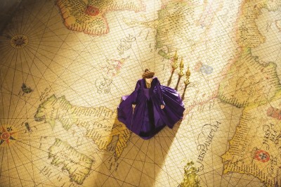 紫色一直被認為是一種彰顯霸氣的顏色,為歐洲皇室和貴族所偏愛。在電影《伊麗莎白:黃金時代》里,伊麗莎白一世的霸業初成時,站到一幅展開的世界地圖上,她的臉沒有正面出現在畫面上,在俯拍鏡頭下,觀眾看到一襲浮華的紫色綢緞禮服裙,巨大的裙擺覆蓋了女王腳下的大海和大陸。