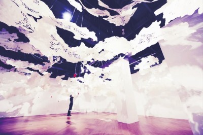 藝術家JUJUWANG的裝置藝術作品《云屋》。作品的基本材料是有著800余年傳承歷史的國家級非遺———手工傣紙,藝術家以現代激光雕刻技術將其進行造型雕刻制作而成。參觀者可身臨“云境”,感受傣紙制成的不同大小的“云”,感受被云層環繞的感覺。