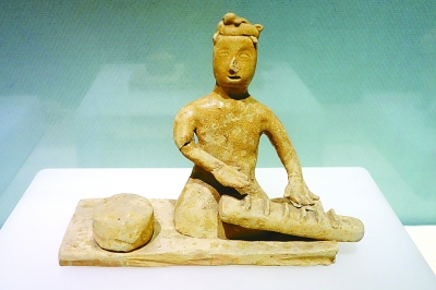 三國時期青瓷彈臥箜篌俑,1980年在湖北鄂州出土,藏于湖北省博物館。光明圖片/視覺中國