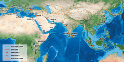 國家文物局水下文化遺產保護中心提供的海上及陸上絲綢之路地圖