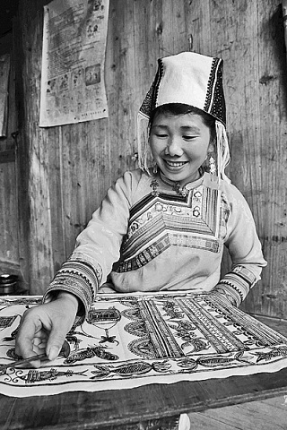 貴州省榕江縣三江鄉冷衣村二組苗族婦女在制作蠟染。李長華攝/光明圖片