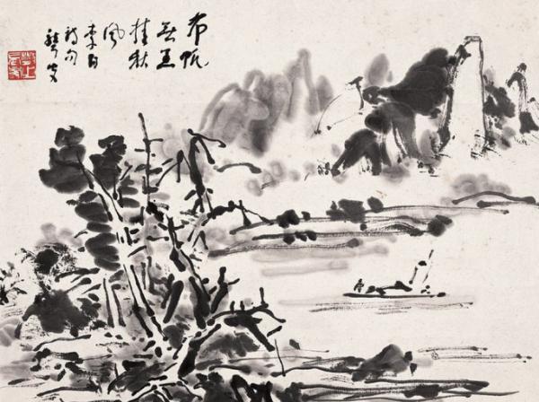 也許傅雷沒有想到,林散之欣然應允。他遵照傅雷的要求,畫了八幅不同風格的山水畫。這八幅山水畫,林散之用心畫著,每一幅有每一幅的構思,每一筆有每一筆的講究,為此,林散之曾說:“予為怒庵畫冊頁八開,由初春而深冬,水墨、著色者相間,濃淡有序,動筆之前便有大體上構思,下筆時細節有變動,但大綱未變??傮w構思疏忽,每幅可看,放在一起便不協調。八開中有‘重頭戲’,《嘉陵江》取斜勢,小中見大;一頁得郭熙遺意,云頭皴似牛毛,筆筆相顧;一頁近子久,多次積墨,較為沉厚?!?/p>