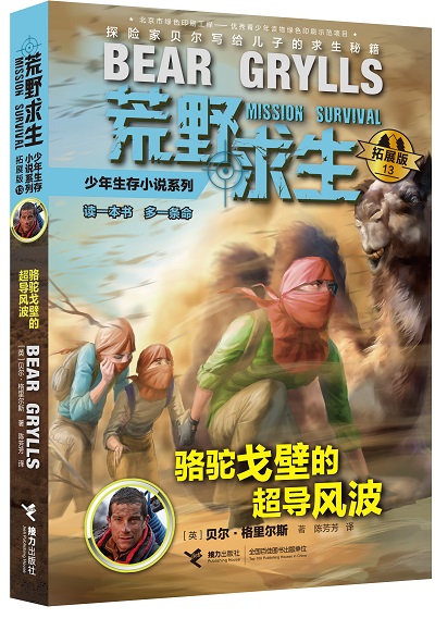 內容簡介:由接力出版社出版的荒野求生少年生存小說系列日前即將推出第十三冊——《駱駝戈壁的超導風波》?;囊扒笊倌晟嫦盗行≌f是著名生存大師、《荒野求生》節目主持人貝爾?格里爾斯專為廣大少年兒童,特別是為三個兒子創作的作品。貝爾將自己豐富的野外生存經驗融入精彩的少年歷險小說,用動人心魄的故事情節生動描述了上百種簡潔而實用的求生技巧,傳遞了野外求生的永恒法則“永遠保持微笑,只要活著就有希望”,引領小讀者在危險環境中,鎮靜從容,險境求生。這套由接力出版社精心打造的青少年生存類小說,引起了社會各界對孩子人身安全問題的關注,并給中小學生講述了切實有效的安全知識,掀起一股青少年安全教育的熱潮。市場數據顯示,該系列圖書累計發行量達到700萬冊。日前即將上市的《駱駝戈壁的超導風波》是“荒野求生少年生存小說系列”的第十三冊,故事延續之前的一貫風格,將生存技巧、求生技能融進驚險刺激的歷險故事。這次的歷險故事發生在中國甘肅西北部嘉峪關外的戈壁沙漠里,主人公貝克和孿生妹妹戴安以及他的中國小伙伴龍瑤隨科學探險隊一起前往戈壁灘,尋找前人探險日記中提到的室溫超導體銳西姆。在尋找銳西姆的過程中,他們的車子不幸跌入鹽湖湖底,駕駛車子的龍博士深受重傷,只能指望三個孩子在24小時內徒步返回營地尋求援助,三人沒有儲備食物,沒有飲用水,還遭遇了沙暴,他們能否化險為夷呢,等待著小讀者們自己揭開謎底。