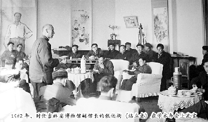 1962年,時任吉林省博物館副館長的張伯駒(站立者)在學術年會上發言。