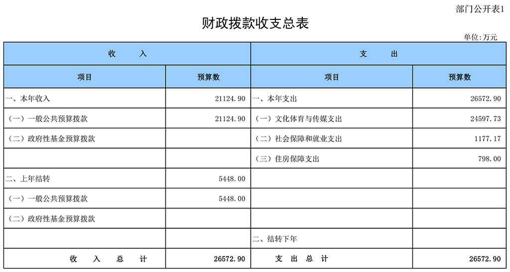 一、財政撥款收支總表