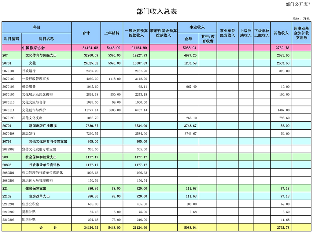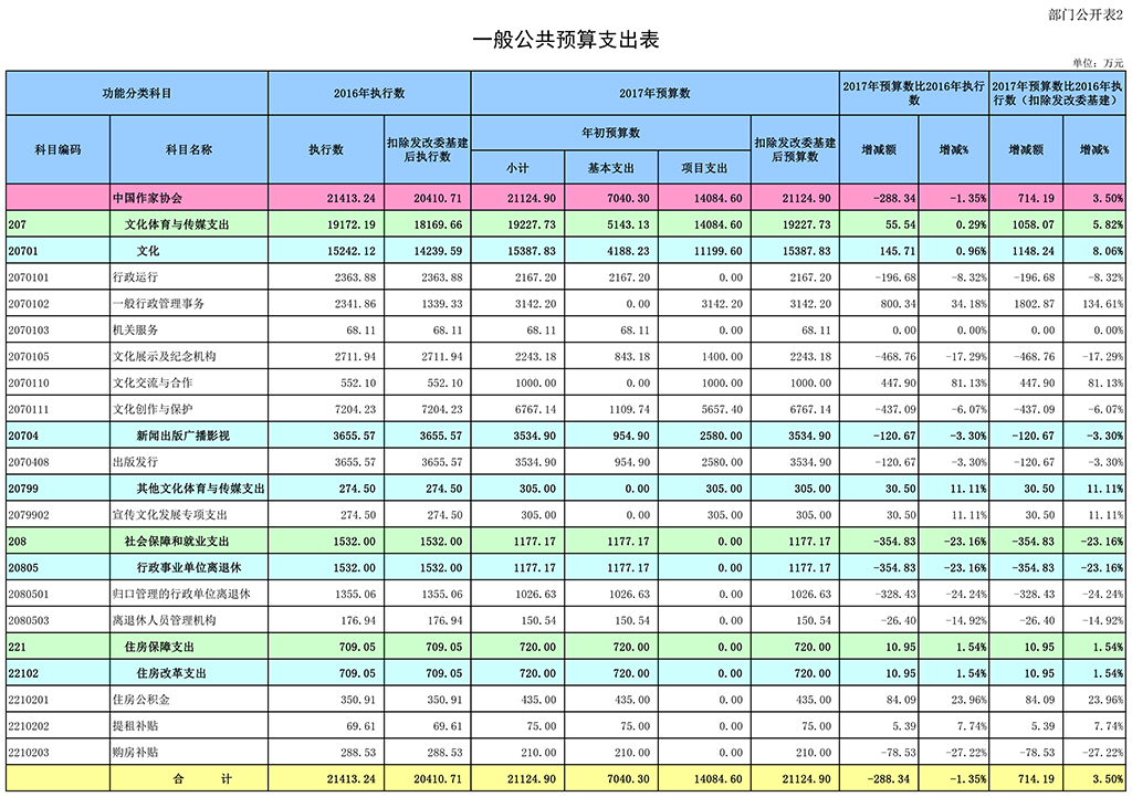 2018年中國作家協會部門預算報表如下: