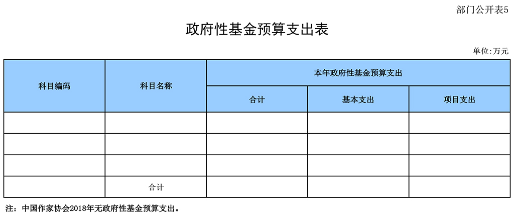 中國作家協會2018年沒有政府性基金預算支出。