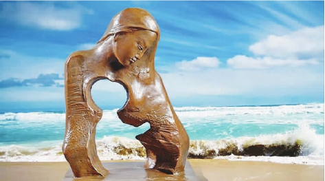 雕塑與其他藝術形式相比有一個鮮明的特點,即其特殊的立體形式,這種立體形式讓其與周圍環境的深度互動成為可能,而如何發揮其優勢,讓其在固定的空間中發揮藝術魅力同時又增強城市空間的審美性,就成為雕塑展覽的新課題。在“公共雕塑邀請展”中,策展人盧征遠特意選擇了22位知名雕塑家的36件具有象征意義的雕塑作品參展,配合著博鰲融創·金灣的碧海、沙灘,以獨特的設計思路體現出中國傳統審美品格與現代化開放眼光的統一,追尋著海上絲綢之路路線的大體布局,展示出藝術家對傳統文化的皈依和對現代“絲路”文化的期待。