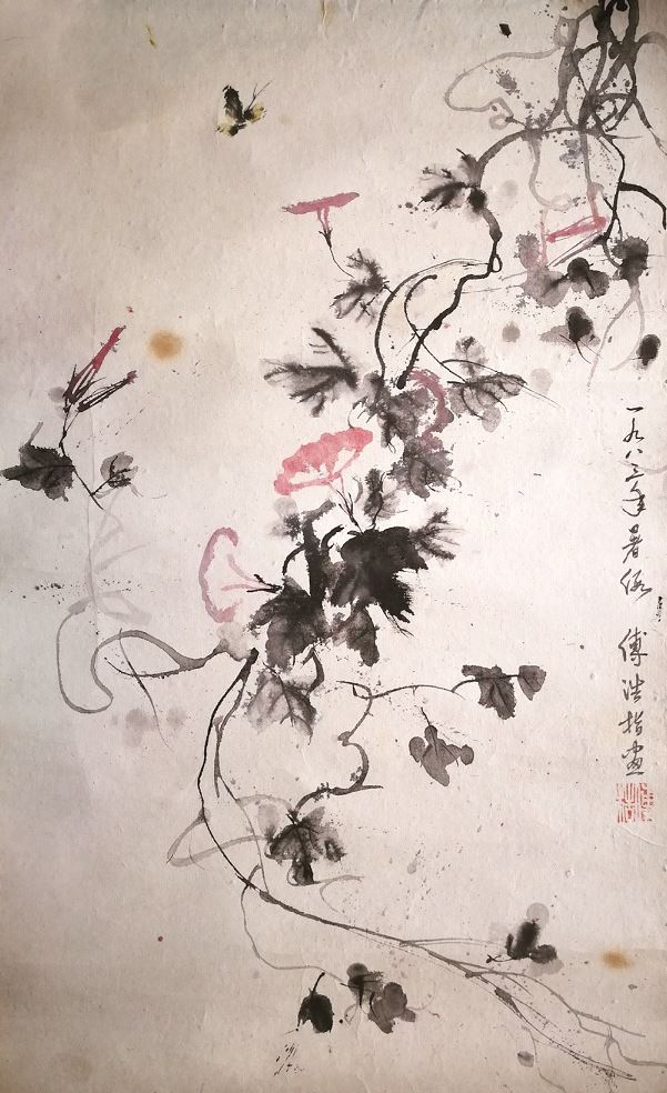 小學五年級起,正式師從西安美術學院退休教授陳瑤生學國畫。先師教學,遵循傳統方法,即每隔一段時間,當場示范,畫一兩幅課徒稿,讓我帶回家去臨摹。開始畫梅花,后來專習墨竹。據先師言,花鳥畫基本功梅蘭竹菊“四君子”中,以畫竹為最難,他老人家曾專研5年。據時人評論,先生晚年的墨竹爐火純青,有“神品”之譽。我雖年少氣躁,不滿足于單調重復的臨摹,但也暗下決心,要把先師的絕技學到手。然而不幸的是,我學了不到5年,先師即于1979年棄我而去了。從此,我又回到了以自修為主的狀態,除堅持研習所學外,還一度嘗試過指頭書畫和篆刻,我書畫上的用印都是自己刻的。