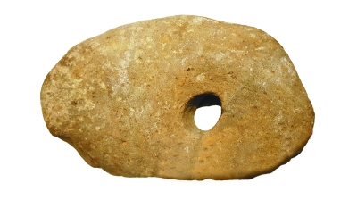 歷時40分鐘,帶孔石頭的另一小半也被找到了。兩塊一合,嚴絲合縫,孔邊凹痕也更加明顯?!拔业臄z影馬甲中總是帶著米尺,測量了孔徑之后,就把數據記在了筆記本上??讖揭幻骈L7厘米,另一面長6厘米,通俗地講就是一邊眼兒大、一邊眼兒小,這是特別重要的人為磨制跡象。新石器時代的鉆孔技術是通過木頭加上水和砂子磨制,磨到底的時候,孔就會略有縮小。這個帶孔的石頭,很有可能是個石磬,懸掛起來敲擊用的?!睆埜S懈嬖V記者。