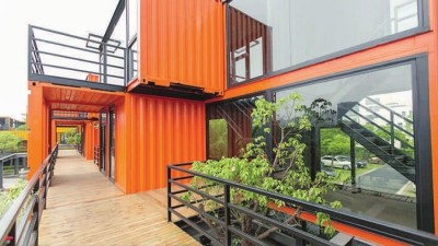 目前正在二期建設中的智慧灣科創園,以其獨特的集裝箱堆疊造型引來上海影視攝制服務機構的關注。(智慧灣供圖)