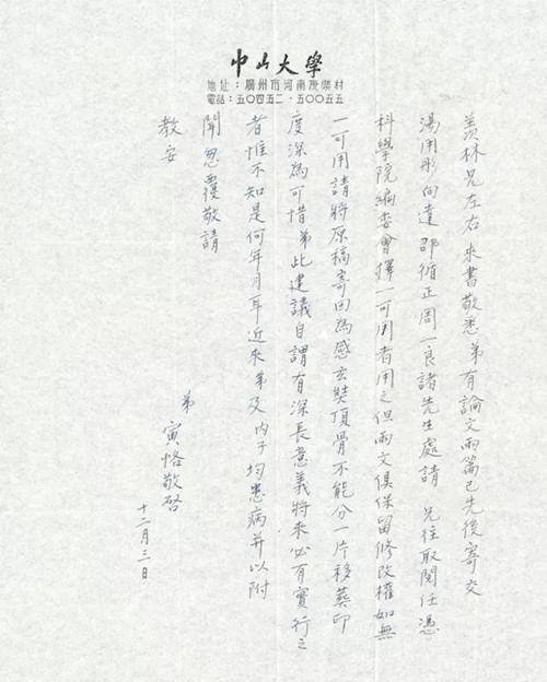 信中所提“科學院編委會”,“科學院”為“中國科學院”,成立于一九四九年,首任院長為郭沫若?!熬幬瘯碑斒恰稓v史研究》這一期刊的編輯委員會。一九五三年九月二十一日,中共中央組建的歷史問題研究委員會召開了第一次會議,其間,中宣部提議成立三個歷史研究所,陳寅恪為中古史所長的最有力人選。此外,會議的另一任務是出版一份史學界的刊物。十月七日,郭沫若電函陳寅恪,聘請他擔任中古史所長,并為次年正式刊行的《歷史研究》創刊號向他征稿。陳寅恪復電推辭了所長一職。(卞僧慧《陳寅恪先生年譜長編》,中華書局,2010年,280—281頁)出人意料的是,陳寅恪此前的得意門生汪篯在十一月執郭沫若信,親自南下嶺南,力勸其北上就職。師徒的談話最終不歡而散,陳寅恪對此的態度集中體現在十二月一日由其本人口述、汪篯筆錄的《對科學院的答復》一文中。不過,關于《歷史研究》組稿一事,陳寅恪并未拒絕。后來正式公布的《歷史研究》第一屆編委的十八人名單中,陳寅恪、湯用彤、向達、季羨林皆赫然在列(蓋志芳《〈歷史研究〉(1954—1966)編委遴選及變動原因分析》,《東岳論叢》2010年第1期)??梢钥隙ǖ氖?,此前不久歷史所已與他們協商過進入《歷史研究》編委之事,并告知了其他被選人員的答復?;蛟S此時已同意受聘為《歷史研究》編委的季羨林在致陳寅恪的信中亦傳達了約稿之意,所以,在十二月三日陳寅恪給季羨林的回信中,首先提及“兩篇論文”之事。一方面,因這兩篇文章之前曾寄給好友湯用彤和向達,此二人與季羨林皆在《歷史研究》編委內,故后者正可順便取閱,以備評審刊用事宜;另一方面,給季羨林的這一回信亦間接答復了郭沫若此前的稿約。從《對科學院的答復》中,不難看出陳寅恪對“時尚”與“新學”積怨之深(陸鍵東《陳寅恪的最后二十年》,111頁),而在當時的歷史學界內引領時尚與“新學”的代表人物,無疑非郭沫若莫屬。因此,在經歷了與學生汪篯的不愉快的談話后,不回復或間接回復郭沫若《歷史研究》約稿一事,應是陳寅恪比較妥帖的處理方式,而此信之回復正可“一舉兩得”。
