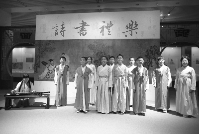 中國國家圖書館利用國家典籍博物館“從《詩經》到《紅樓夢》——那些年我們讀過的經典”展覽展廳開展體驗式教育活動,學生現場朗誦詩歌,在詩詞中感受絲綢之路的歷史變遷。 本報記者 陳 曦 攝