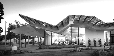 加利福尼亞州圣莫尼卡皮科分館。該館位于圣莫尼卡弗吉尼亞大街公園中,不僅提供了各種教育文化資源,還為社交提供了場所。該館面積近9000平方英尺,充分挖掘了各種沒有使用的空間,進一步拓展了公園廣場的活動功能。該館獲得了美國綠色建筑白金認證,充分利用了自然采光、遮陽等技術:天窗和雕花天花板有助于最大限度地利用光線,凸顯圖書館的建筑特征;長長的挑檐和頂篷可以保護玻璃免受陽光直射,并消除陰影的影響。通過雨水收集系統,圖書館從其屋頂和相鄰建筑物的屋頂收集雨水,在過濾之后用于沖洗廁所。