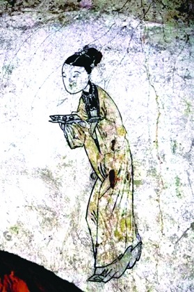 該墓為多室墓,在其中一室中發現4幅壁畫及一些陪葬品碎片。4幅壁畫中,一幅是侍女端酒圖,兩幅是菊花圖,另一幅則因殘缺不全看不清場景。