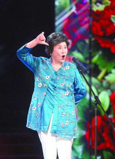 北京評書國家級代表性傳承人劉蘭芳在曲藝周開幕式上表演《康熙買馬》。
