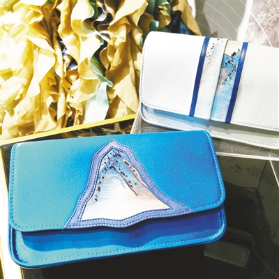 日前,非遺傳承人群研培計劃優秀成果展舉行,圖為學員制作的“千里江山挎包”。 本報記者 鄭海鷗攝