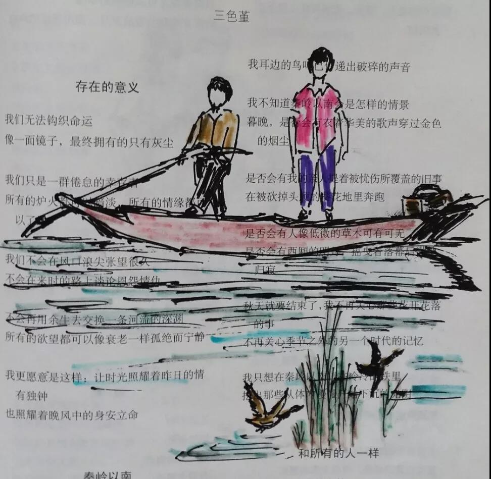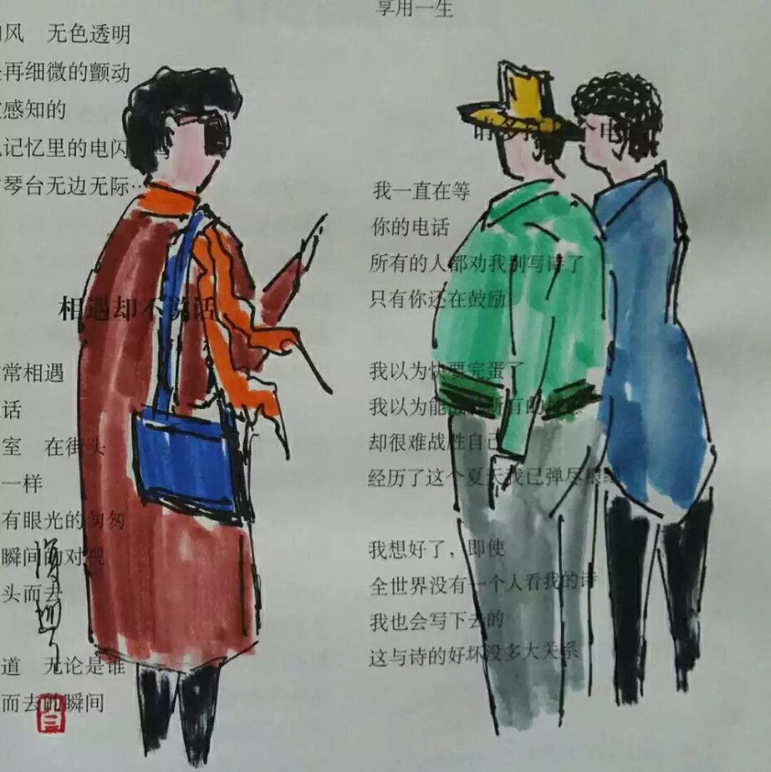 中國文人畫本來就講究題詩和題句,讓畫與詩互文。好的詩文會給畫以象外之意。詩刊上這些詩句和詩題,幫我這些無聊的畫點綴出新鮮一些的生趣。這樣意外的發現,讓我自鳴得意,在詩刊上畫畫的勁頭更多更濃。在我家所有的刊物中,詩刊是被利用得最充分的,也成為我最喜歡隨身攜帶的速寫本。