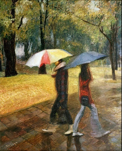 創作《秋雨》聯想到許多事,聯想到自己的情感經歷,以及見過的,聽來的,書里,電影里的各種故事。有多少無緣的人,因為各種原因擦肩而過,又有多少有情人因為各種原因結緣,或者最終還是擦肩而過。難道這不是人類最復雜情感的一條永恒定律嗎?