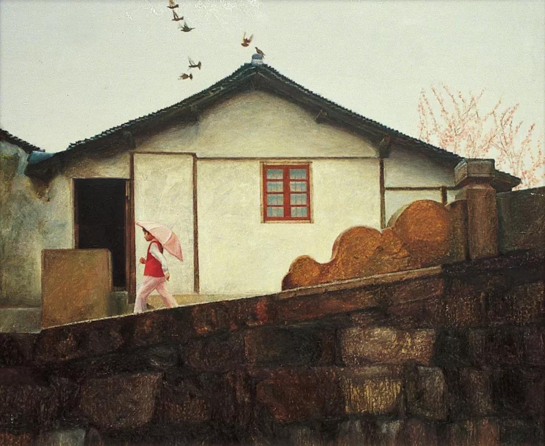 雨巷和紅傘|油畫|55.6x46.2cm|1995年