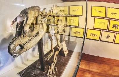 “世紀典藏——上海博物溯源”特展正于上海市歷史博物館舉辦,圖為現場展出的恐龍骨骼標本。袁婧 攝
