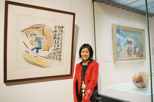 1吉建芳在展廳王蒙年輕時候的漫像前-中國國家博物館-2013年9月