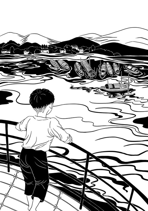 許是累了,厭倦了,過了一頓煙工夫,水活雙腳安靜下來了。不知不覺,兩行清淚從他紅撲撲的臉頰滑下來。天藍得高且遠,白云像一葉葉沒有拋錨的疍家船,沒有方向,也沒有目的,任意漂流;又像一個個搖搖晃晃的醉漢,時笑時哭,分明在嘲笑水活是一個野孩子——跟那些經常沖他指指點點的人一樣,讓人憎厭。十歲的水活又來氣了,雙腳在水里不停地蹬起來,濺起的水花更白了,跳得更遠了,一群群順流而下的小魚兒被嚇得魂飛魄散,四處逃竄。