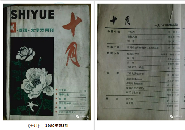 從創刊至今,《十月》對中篇小說發展做出的貢獻尤其值得提及??飫撧k人之一的資深老編輯、散文家張守仁說:“當時那些月刊一期就十幾萬字,所以發一個中篇就了不得了,而我們一期就發三四個。從‘五四’以來,還從來沒有刊物這樣做。 可以說,《十月》引發了中篇小說的第一個高潮。同時,我們抓緊時機,召開了一個中篇小說座談會,把很多作家都請來參加,推動中篇小說這個體裁的發展?!笔聦嵉拇_如此??梢哉f,在中篇小說領域,能夠與《十月》雜志抗衡的刊物幾乎沒有?!妒隆返闹衅≌f獲得的全國性獎項(“魯獎”和“全國優秀中篇小說獎”)有十八部之多。更重要的不是數量,而是這些作品的巨大影響力。比如王蒙的《蝴蝶》,鄧友梅的《追趕隊伍的女兵們》,劉紹棠的《蒲柳人家》,宗璞的《三生石》,張承志的《黑駿馬》《北方的河》,鐵凝的《沒有紐扣的紅襯衫》《永遠有多遠》,張賢亮的《綠化樹》,賈平凹的《臘月·正月》,張一弓的《張鐵匠的羅曼史》,葉廣芩的《夢也何曾到謝橋》,方方的《斷琴口》等,都是三十多年來中篇小說最重要的作品。