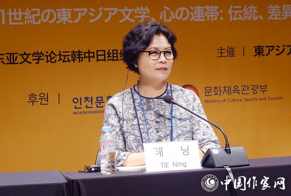 鐵凝用“十年樹木”來概括東亞文學論壇走過的十年時光。她說,參加論壇的每一位作家就像一棵獨立的文學之樹,作家們的集結成就了論壇這座文學之林。每一次論壇不斷有新的作家加入,更使文學之林變得格外富有朝氣和活力。在文學之林里,我們可以靜默地佇立著,我們的心事也不盡相同甚至相反,然而總有風舞動的枝條,樹們有時也需要喧鬧和走動。論壇為文學之林創造著暫停靜默、集結交流的時間,時間培育了三國作家從試探漸漸走向有話要談。