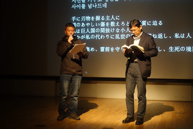 雷平陽和韓國詩人郭孝桓在“文學之夜”活動上一起朗誦
