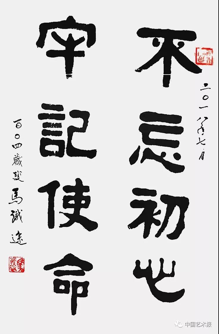 中國藝術報:馬老您好,能在您的書法展在京舉行之際做此專訪,親耳聆聽一位革命前輩、世紀老人的心聲,感到非常榮幸。我的問題主要集中在書法與文學創作兩方面。首先想請您介紹一下這次在北京舉辦書法展的基本情況。