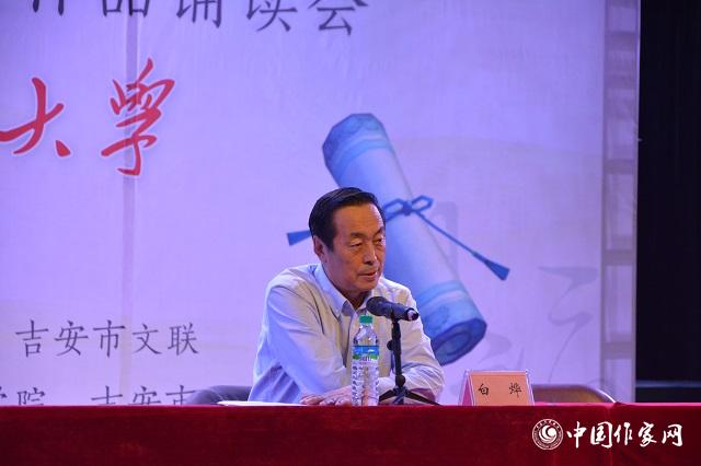 29日下午,由中國作協主辦,江西作協、井岡山大學、吉安市文聯協辦的中國作協“文學照亮生活”全民公益大講堂暨優秀文學作品誦讀會在井岡山大學舉行。中國社科院研究員、中國當代文學研究會會長白燁以《經典是怎樣煉成的》為題作講座。井岡山大學校黨委書記彭涉晗致辭,培訓班學員、井岡山大學師生、部分江西省作家、吉安市文學愛好者等參加活動。