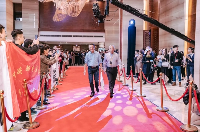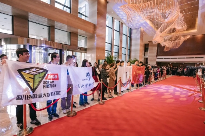 11月3日下午,頒獎典禮前,作為全球華語科幻星云獎一項重要傳統的入場儀式——科幻紅毯禮在重慶霧都賓館大堂盛大舉行。來自重慶大學、西南大學、重慶郵電大學、四川外國語大學、四川大學、成都理工大學、南京工業大學等多地高??苹脜f會代表及重慶南開中學的眾多科幻迷們,早早地站在紅地毯旁等候,歡呼迎接科幻明星們。
