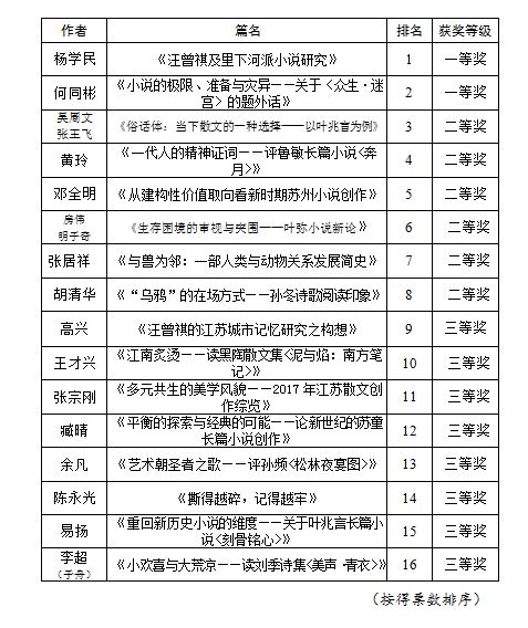 附:第七屆“長江杯”文學評論獎評審結果名單