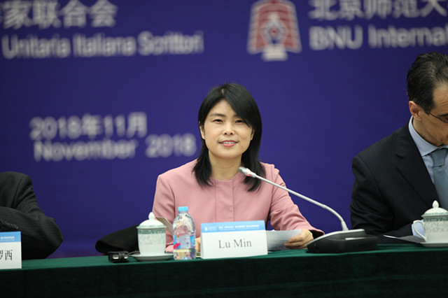 魯敏代表中國作協向遠道而來的意大利作家表示了熱烈的歡迎。她提到,在中意雙方的共同努力下,中意文學論壇分別于2011年和2015年在意大利成功舉辦過兩屆,并且成為了中意文學交流的重要平臺。她期待在本屆中意文學論壇上,大家能夠暢所欲言、深入交流,分享各自的寫作觀和文學觀,增進了解,通過文學的紐帶,加深兩國作家之間的情誼,拓展出更多文學創作與合作的可能性。